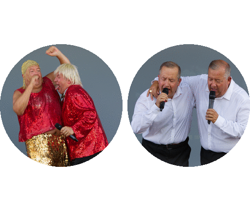- Un duo complice mêlant chant direct, instruments, parodies, vidéo, danse, humour, costumes et grandes émotions !