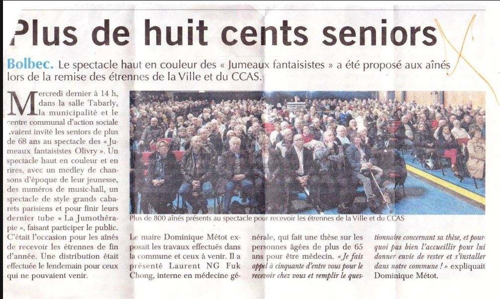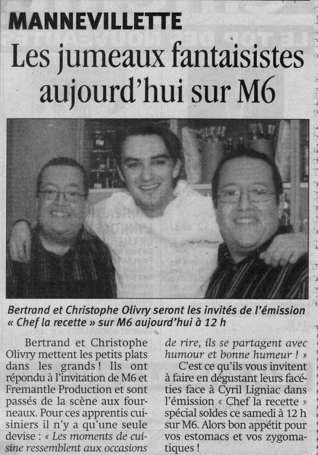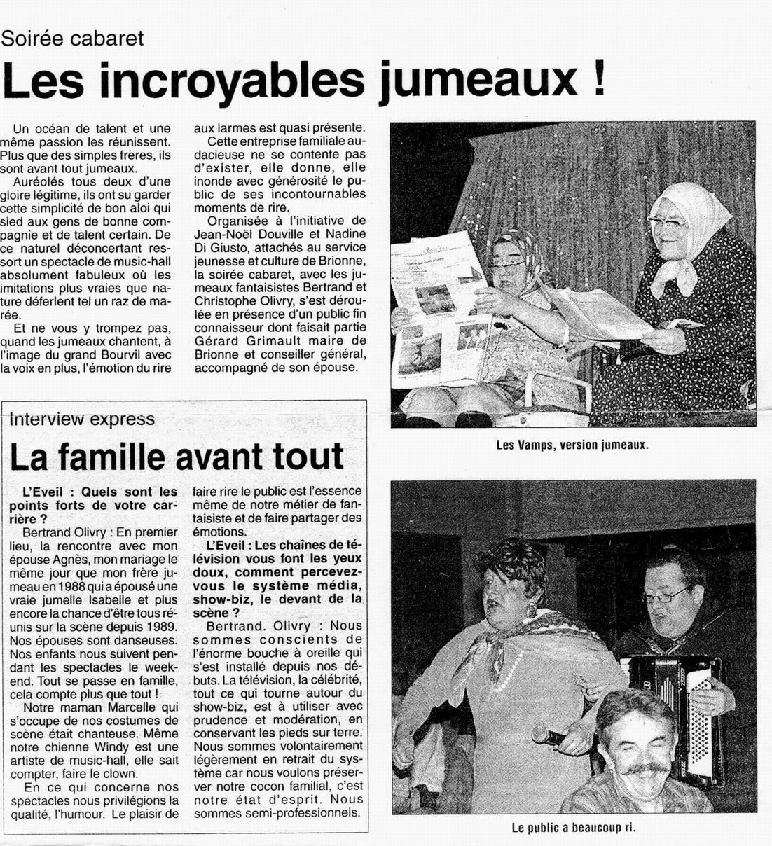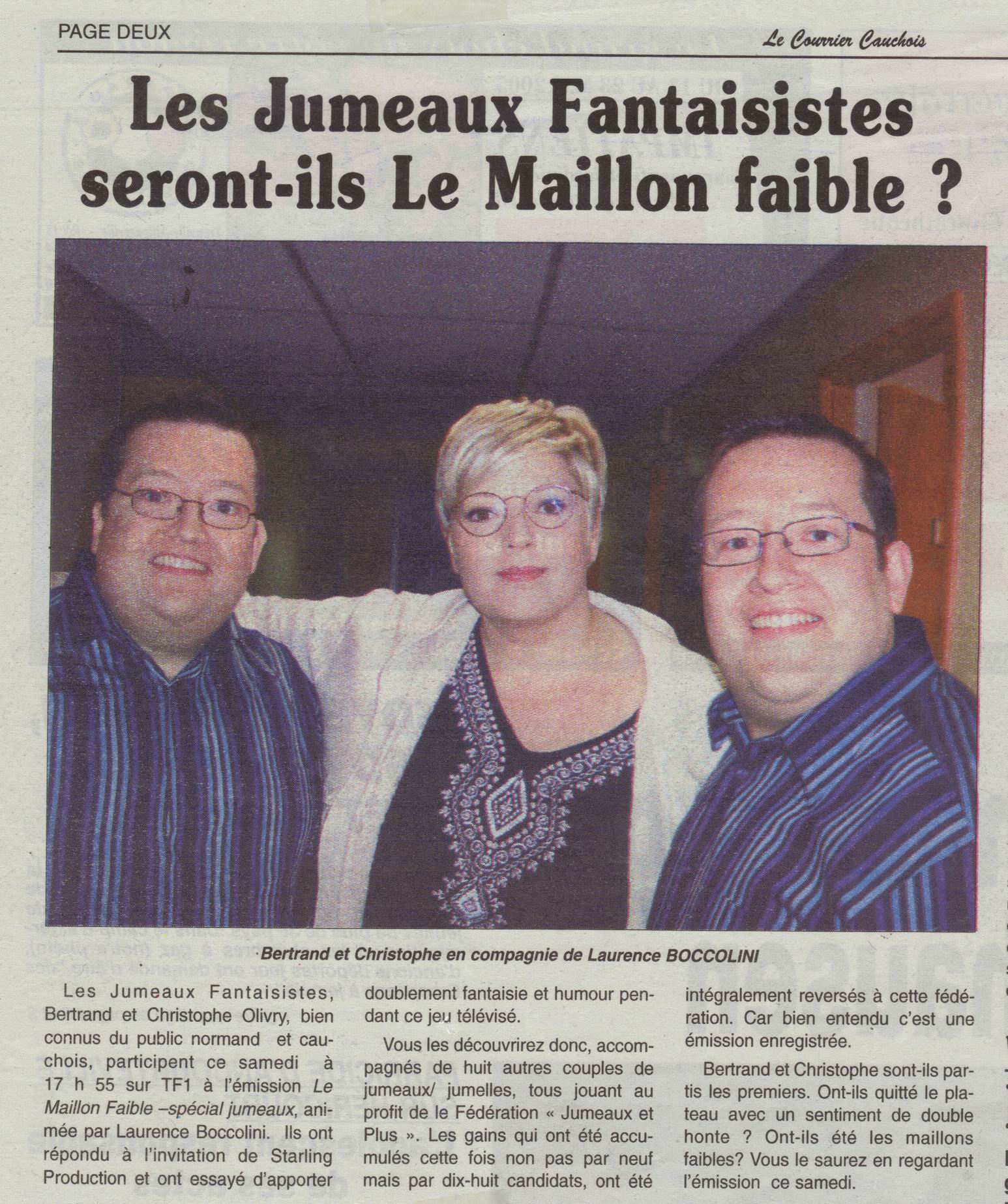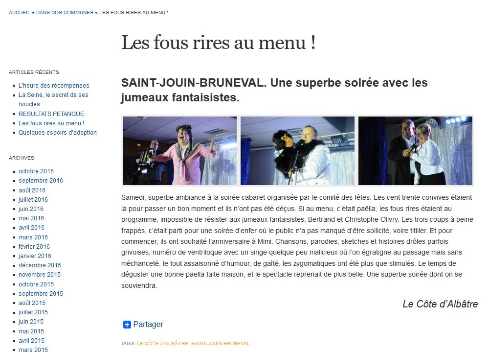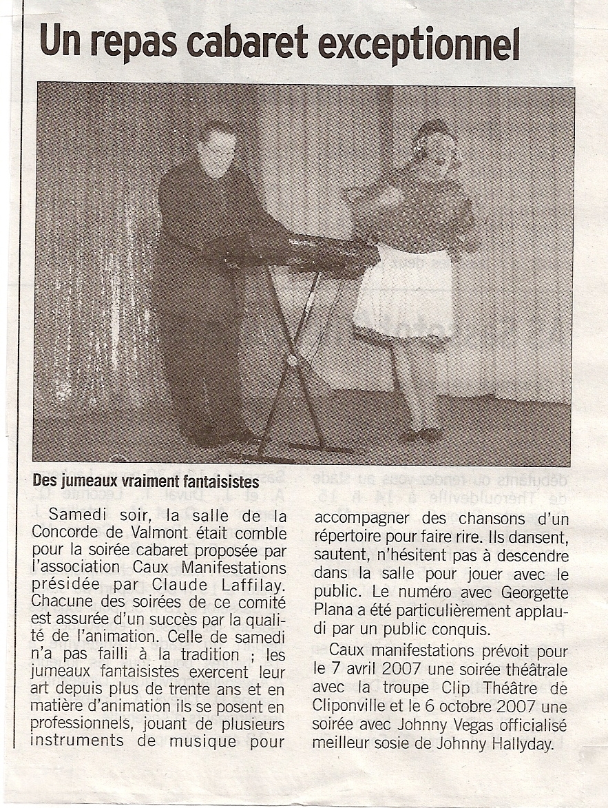 Les Jumeaux fantaisistes tiennent à remercier tous les journalistes de La voix du Nord, Ouest France, Paris Normandie, Le Havre Presse et le Havre libre, Le Courrier Cauchois, l’Eveil, Télé 7 jours, Télé z… pour leurs éloges d’hier et d’aujourd’hui qui ont leur ont permis de se faire connaitre et reconnaitre dans leur singulatité et originalité.