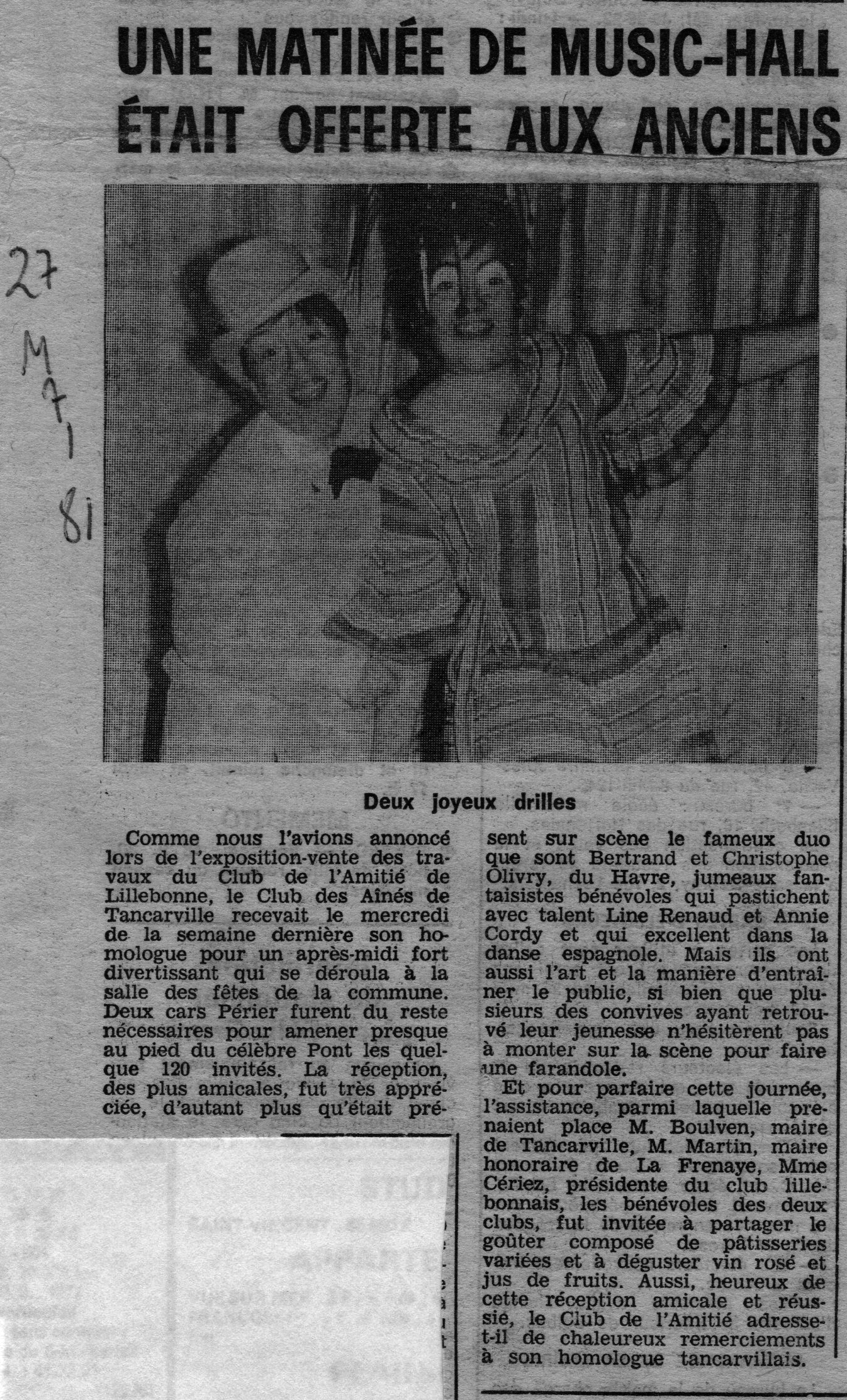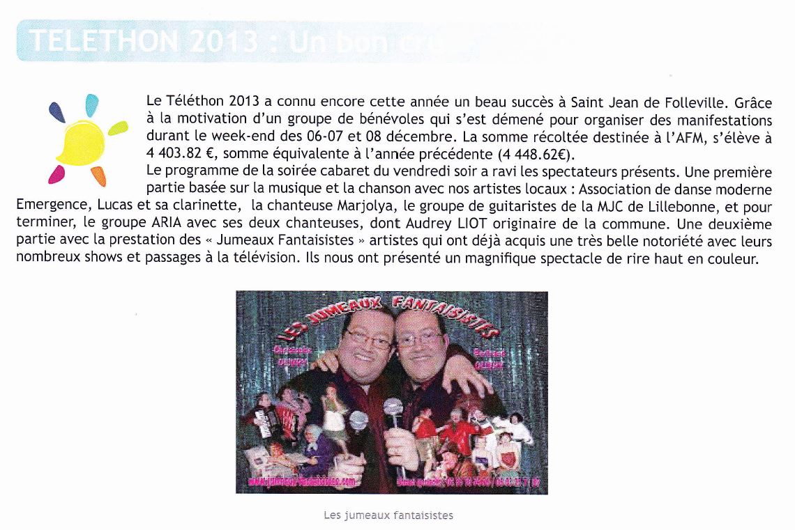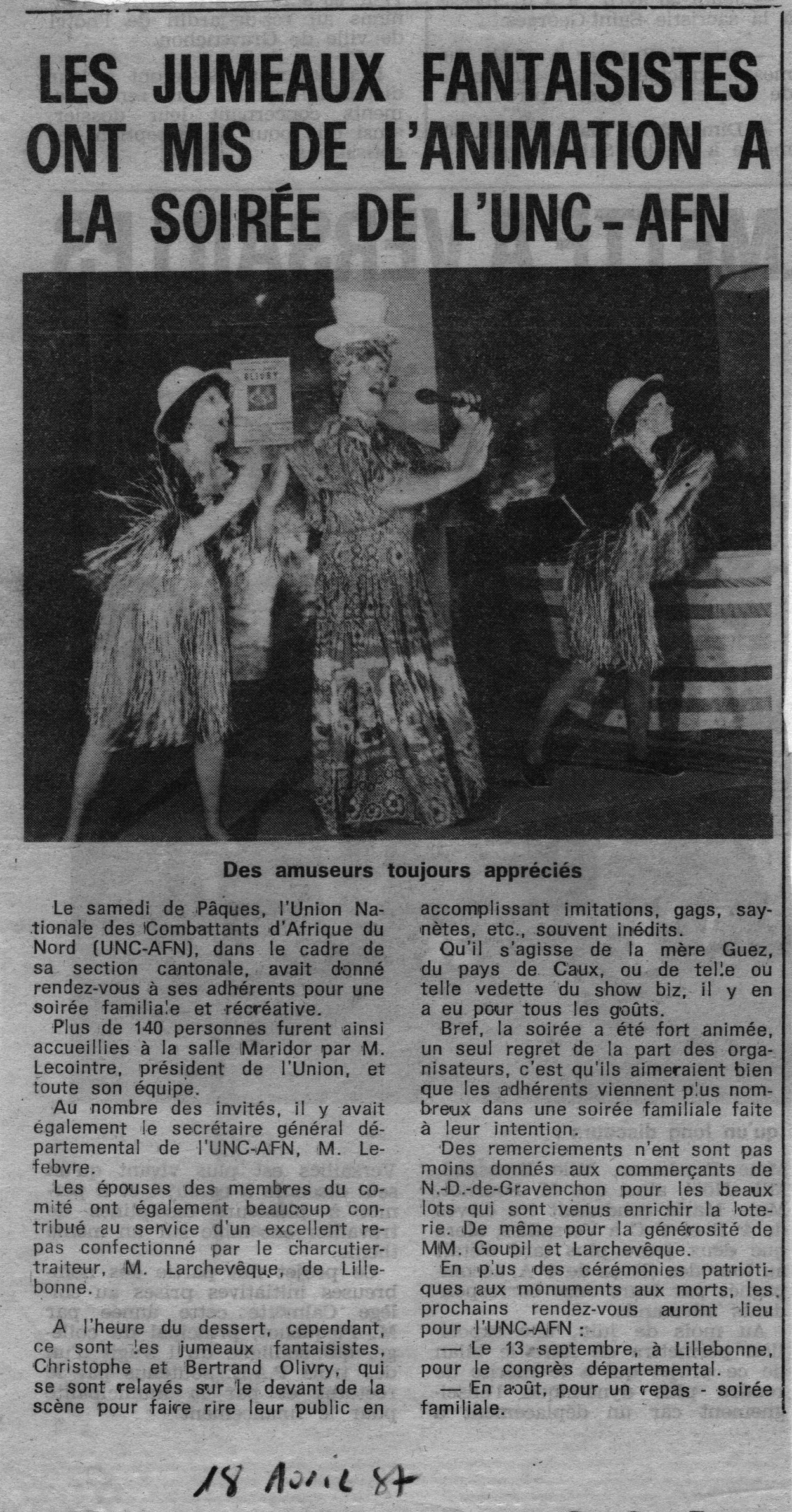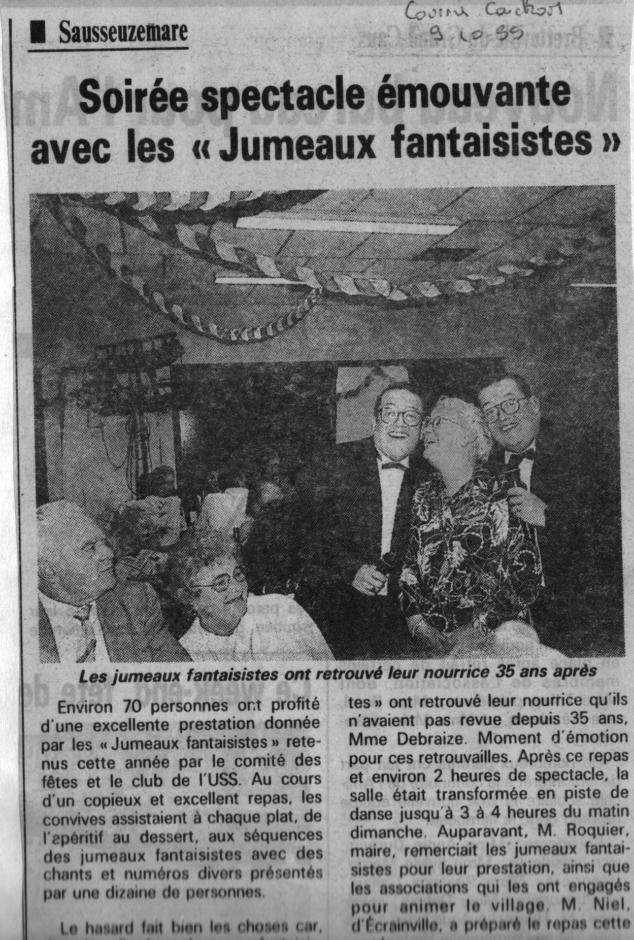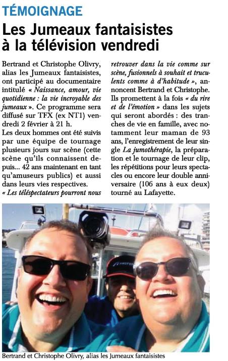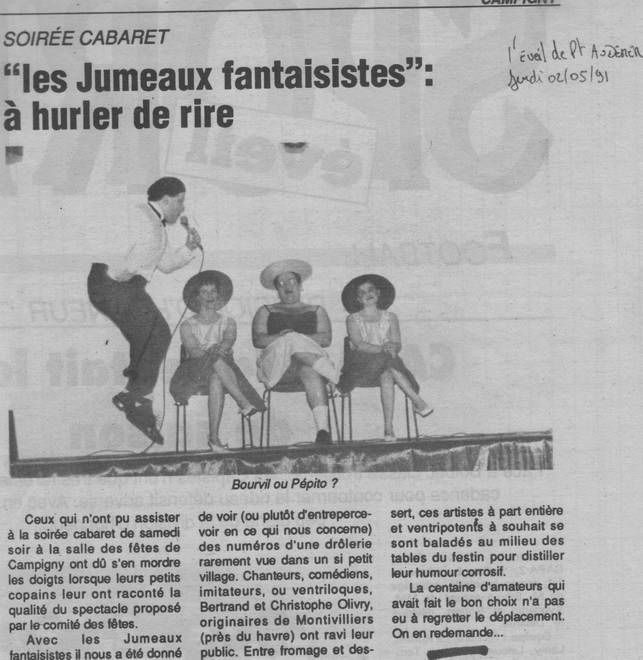 Les Jumeaux fantaisistes tiennent à remercier tous les journalistes de La voix du Nord, Ouest France, Paris Normandie, Le Havre Presse et le Havre libre, Le Courrier Cauchois, l’Eveil, Télé 7 jours, Télé z… pour leurs éloges d’hier et d’aujourd’hui qui ont leur ont permis de se faire connaitre et reconnaitre dans leur singulatité et originalité.